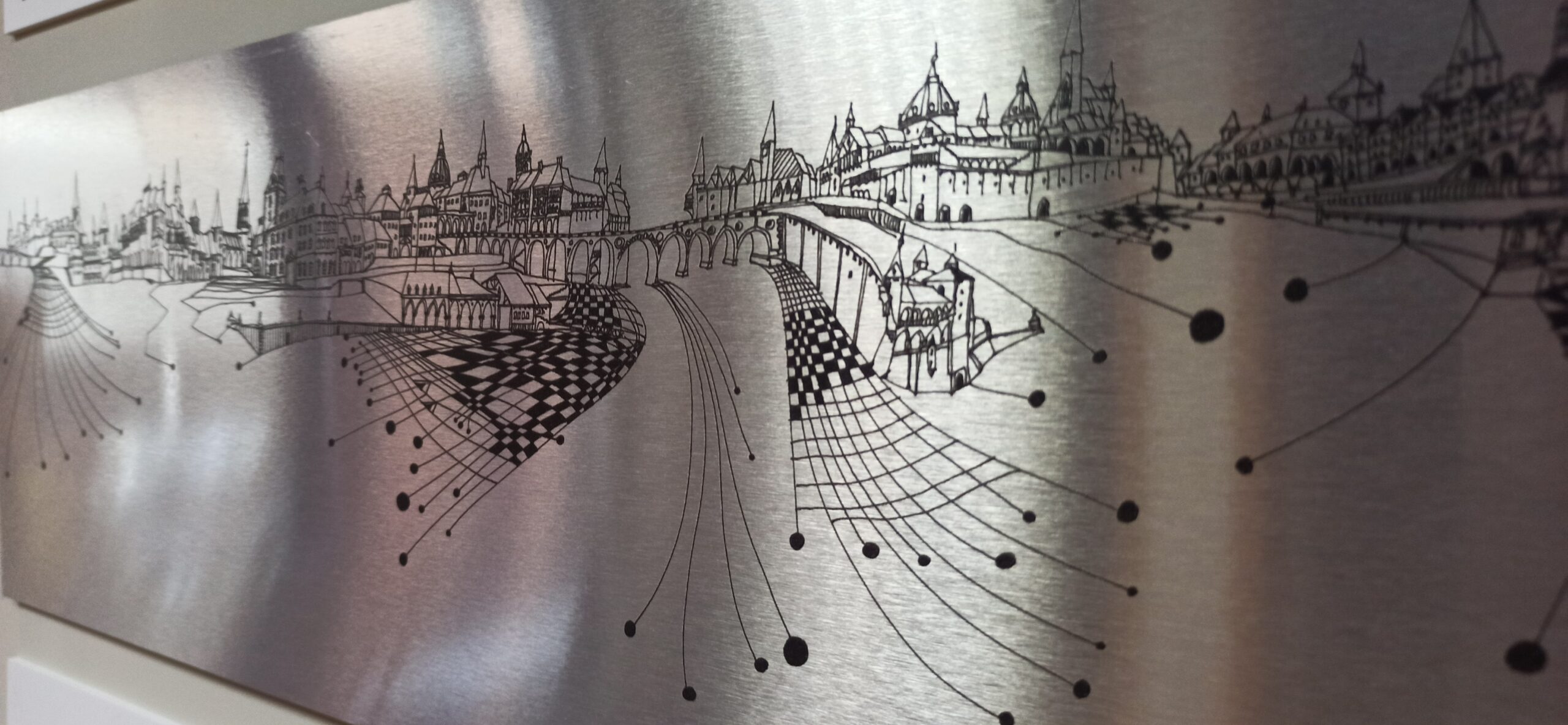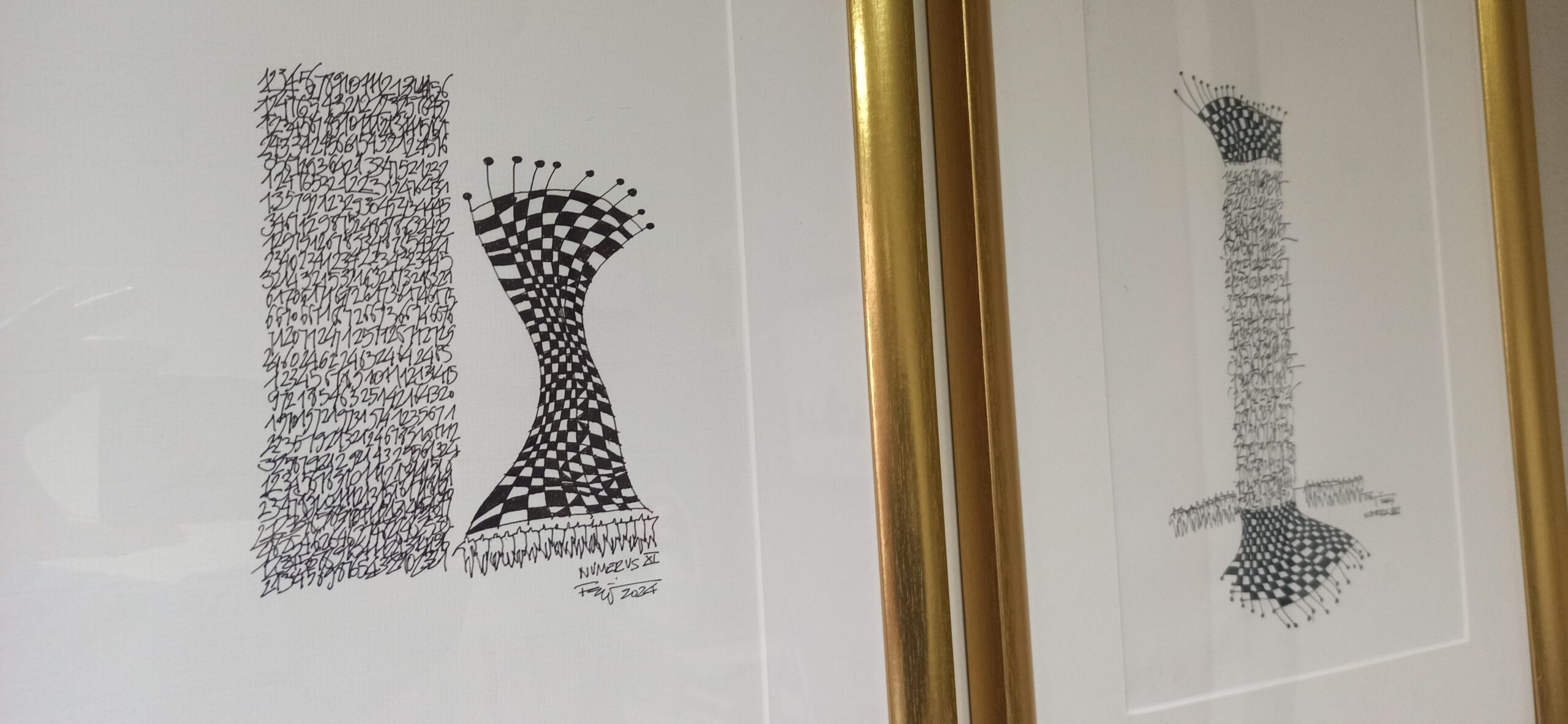 Del 27 de enero al 7 de mayo. En esta exposición se recogen obras de sus series, Alumundos y Arquitecturas de Occidente, y Numervs, del artista ilustrador ovetense Carlos Feijóo Alonso, a quien gusta recrear paisajes imaginarios y oníricos, bien sobre papel o sobre planchas de aluminio, con predominación de los dameros. Pintura ilusionista de ensoñaciones, utopías y paisajes fantásticos, utilizando técnicas mixtas que le acercan a los presupuestos del Op Art, ese arte óptico que está creado para que sea el espectador el que con sus ojos le dé una lectura personal a cada obra, con la diferencia de que frente a la abstracción de aquel, en la obra de este artista asturiano la figuración siempre está presente, aunque ésta sea una figuración no realista, sino una que muestra arquitecturas y elementos fabulosos que, curvos y ondulantes, ofrecen sensaciones de flotación y espejismo que sugieren al mundo de Alicia de Lewis Carrol. Por otra parte, el uso de números como generadores de estructuras, acompañados de ilustraciones humanas, transmiten idea de construcción y evolución personal, de toma de decisiones y elecciones vitales que terminan configurando edificios vitales e irrepetibles.